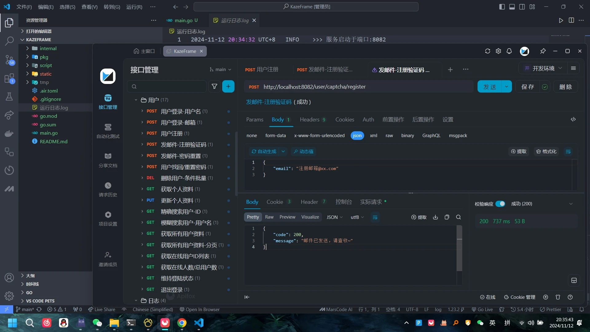 Gin+Gorm+Redis项目快速开发脚手架,基础接口完善:登陆/注册/找回密码、jwt+中间件鉴权、邮件验证码等。内含在线/离线接口文档,CRUD皆已进行合理封装,便于扩展新的业务接口。