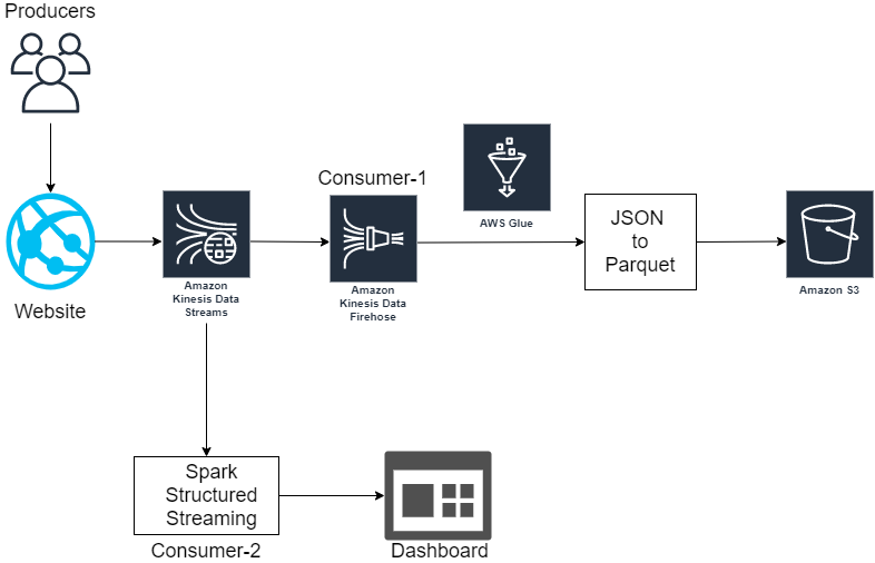 There are two consumers in out architecture. One is the Spark Structured Streaming Job and the other one is the Kinesis Firehose.
