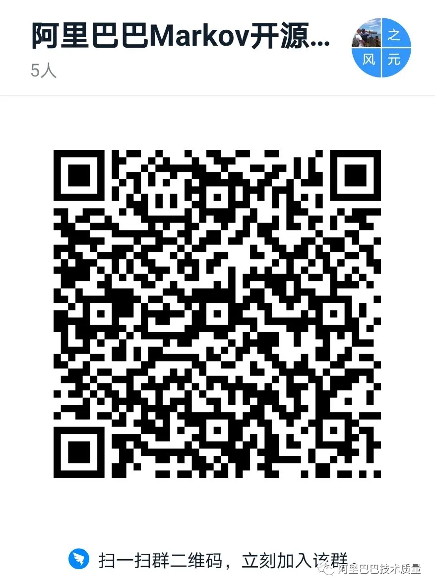 Markov由阿里集团-新零售智能引擎事业群-广告产品技术事业部-技术质量-引擎&基础测试及平台团队荣誉出品,markov-opensource@list.alibaba-inc.com和github issue联系和反馈。