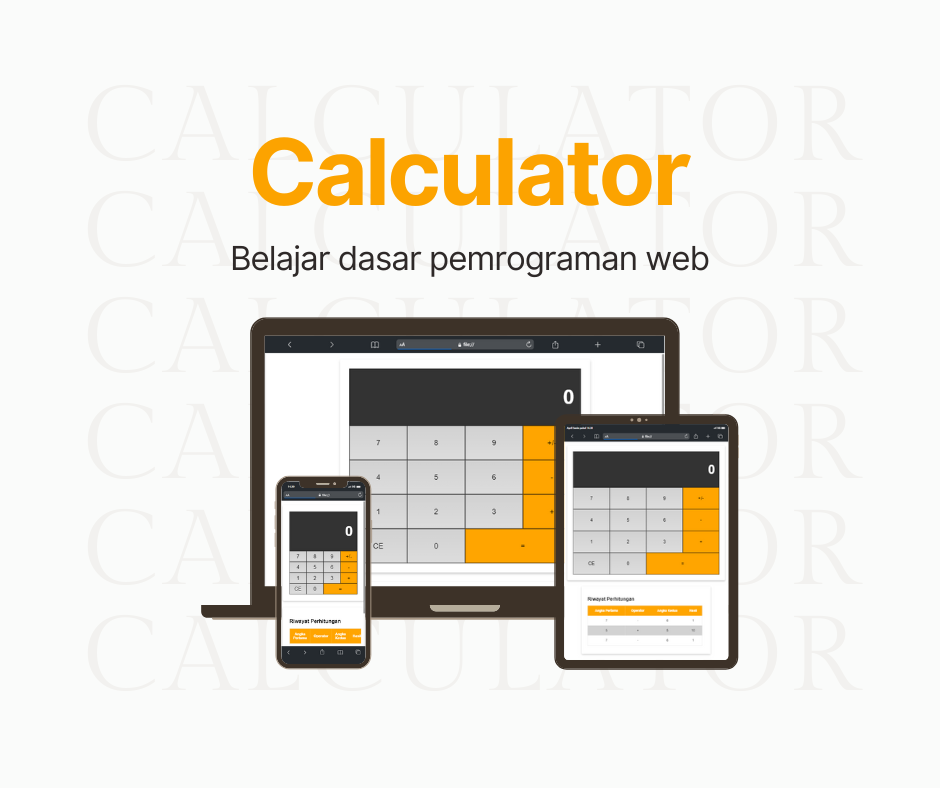**Calculator** - Calculator merupakan aplikasi perhitungan angka, aplikasi ini dibuat sebagai latihan html, css dan local storrage pada kelas [Belajar Dasar Pemrograman Web](https://www.dicoding.com/academies/123) di Dicoding Academy