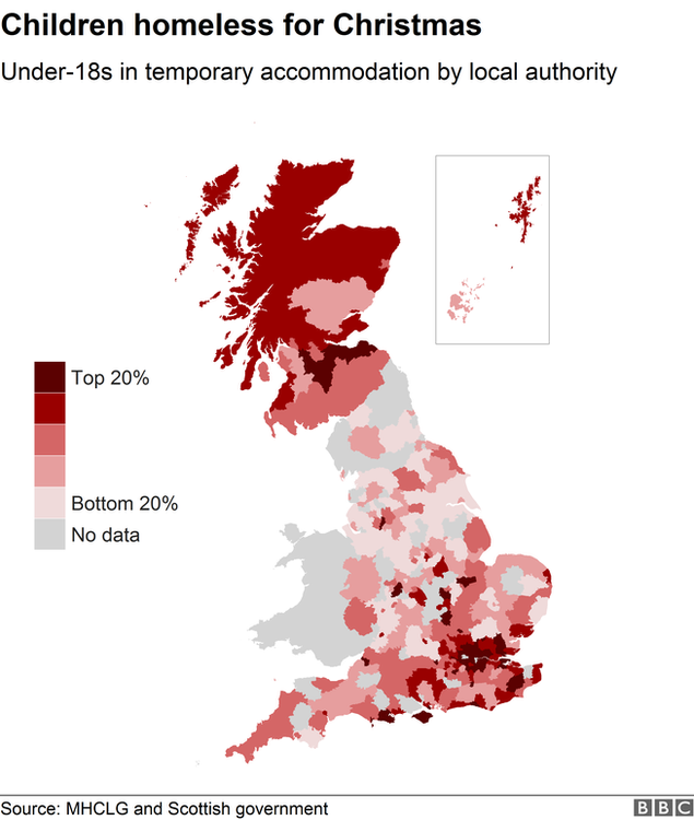 In December 2018 we [reported](https://www.bbc.co.uk/news/uk-england-46360119) on official figures suggesting that more than 130,000 children across Great Britain would spend Christmas in temporary accommodation.