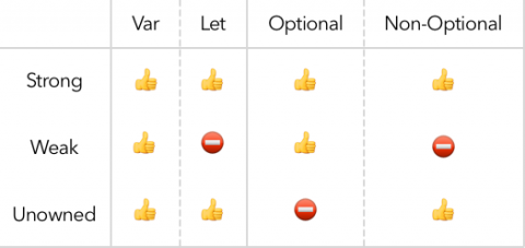 * iOS는 레퍼런스 카운팅을 통해 레퍼런스가 더 이상 사용되지 않는 시점을 결정하여 레퍼런스가 할당받아 사용하던 메모리를 해제할 수 있도록 만듭니다. 개념적으로 간단한 것으로 프로퍼티, 상수, 변수에 레퍼런스가 지정되면 때 여기에 들어있는 카운트를 증가시키고 프로퍼티, 상수, 변수가 해제되면 카운트를 감소시킵니다. 보유한 카운트가 0이 되면 메모리를 해제시킵니다.