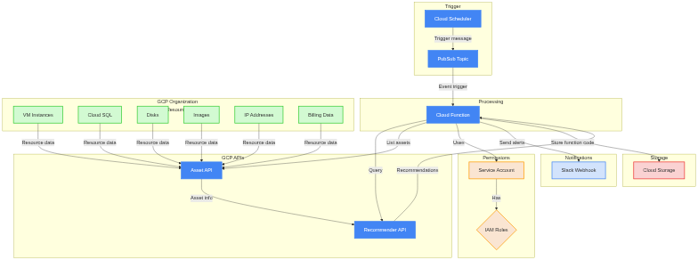- Assign necessary roles/recommender.* for each resource type you want to check4. Cloud Storage