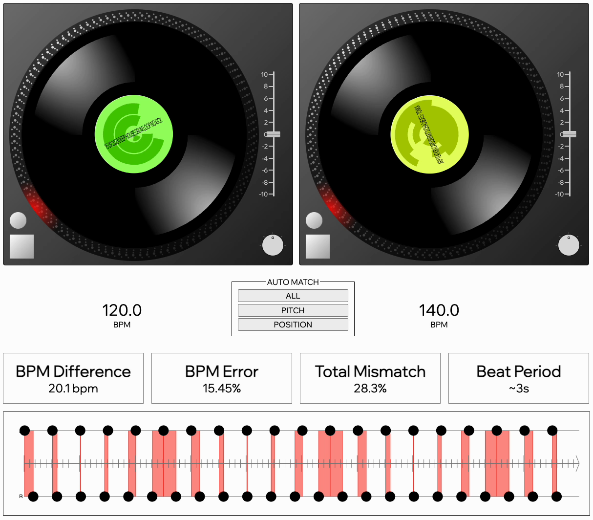 the beats are still out of sync. Clicking the Auto-Match Position button brings the beats into sync, and the Total Mismatch