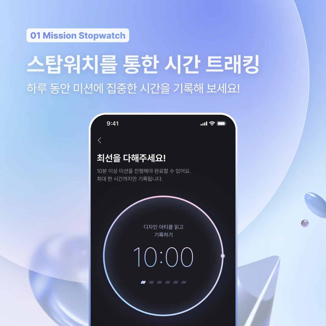 ### 💙 10분 단위로 내가 집중한 시간을 알 수 있는 ‘스톱워치’