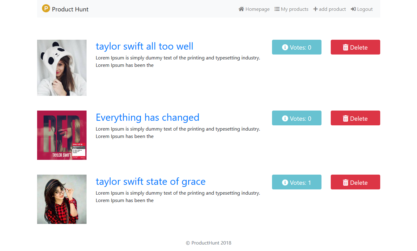 Django product hunt clone is a project where member can add product and can give vote to a product. A member can add product and also can delete the product which are only added by him. Products will be appear in the page by their votes.