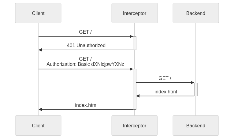 The client sends a request to the backend (Interceptor) which does the authentication.