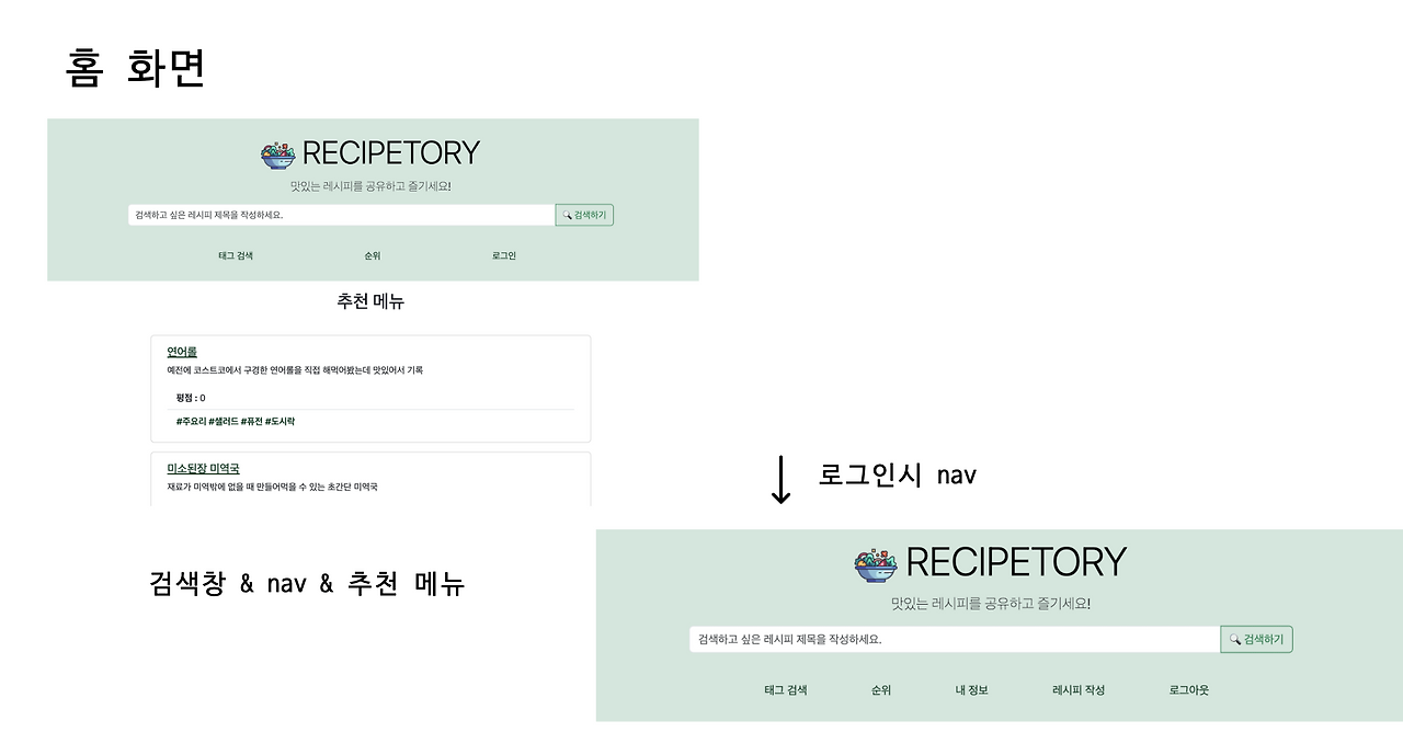 **Recipe**(레시피)와 Reposi**tory**(리포지토리)의 합성어로, 회원들이 레시피를 공유하고