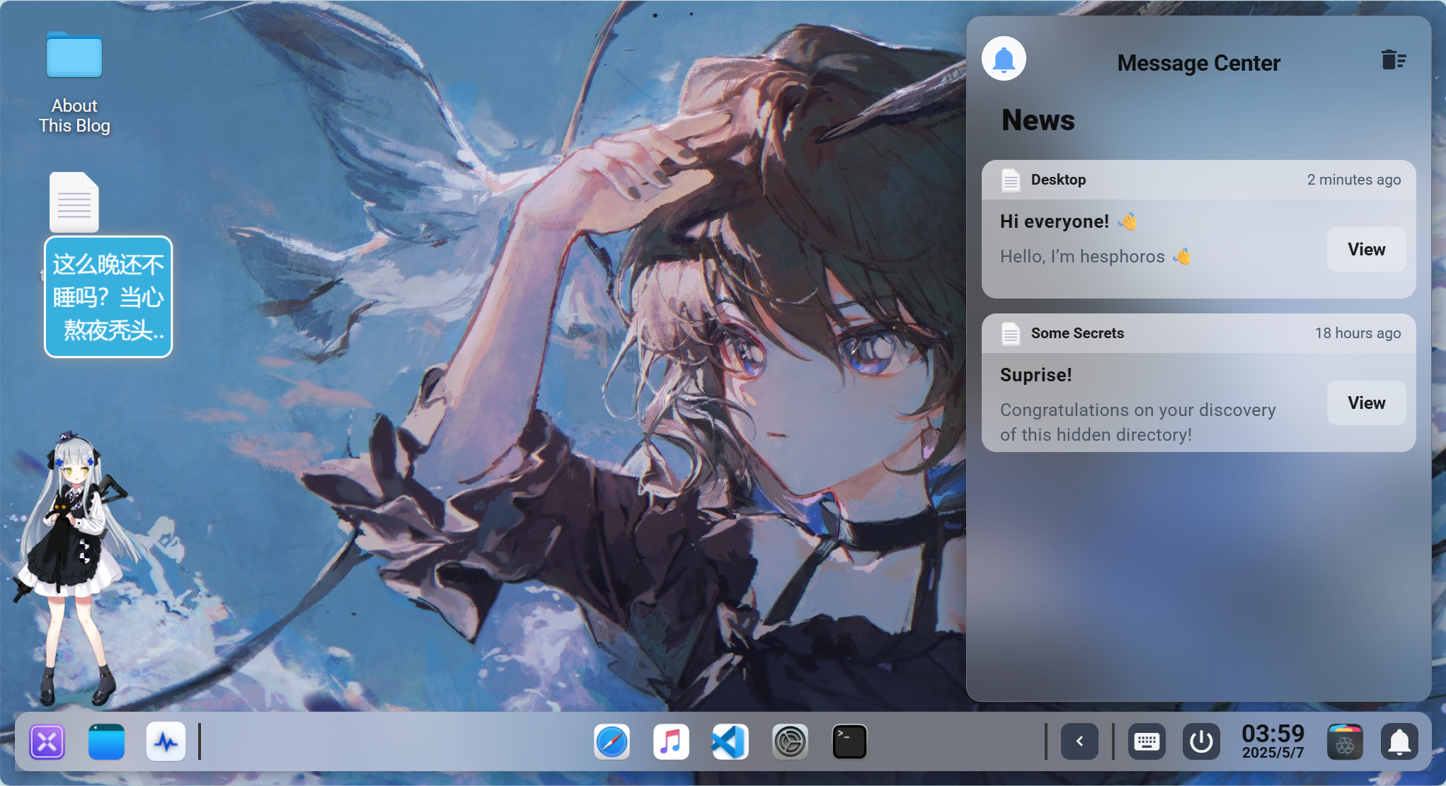 A website simulating linux system's GUI, using theme of Deepin distro.