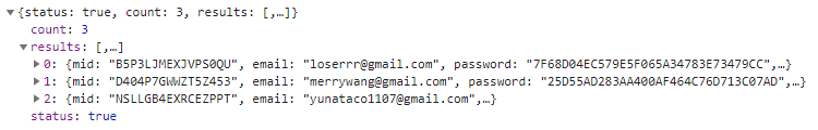 - APP_KEY相符 且 SQL語法執行成功 -> 回傳 status = true 及查詢結果---