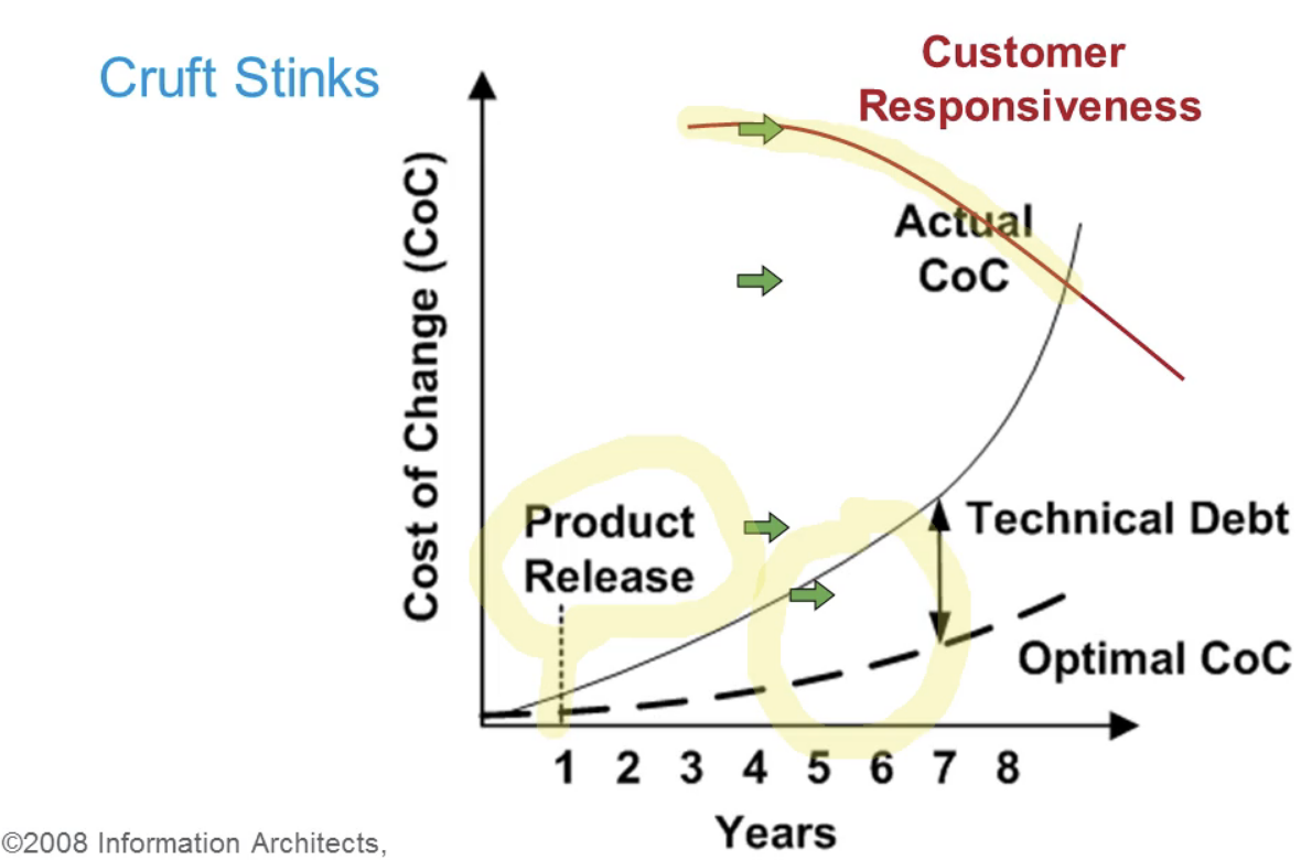 In conclusion, the core solution to reducing technical debt is refactoring, and the core practices are TDD and BDD. The “test-first” approach includes testing, incremental design through refactoring, and just-in-time analysis. The safety-net provides the necessary confidence to make swift and confident changes. The cost of these practices might seem expensive upfront, but the savings in rework cost and the ability to adapt to changing market conditions usually pay for it within a year, often within six months.