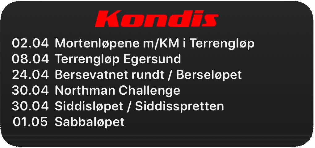 Widget to display upcoming activities viewable on [Kondis Terminliste](https://terminlista.kondis.no/). Fully configurable within script, supports medium and large sized widgets.