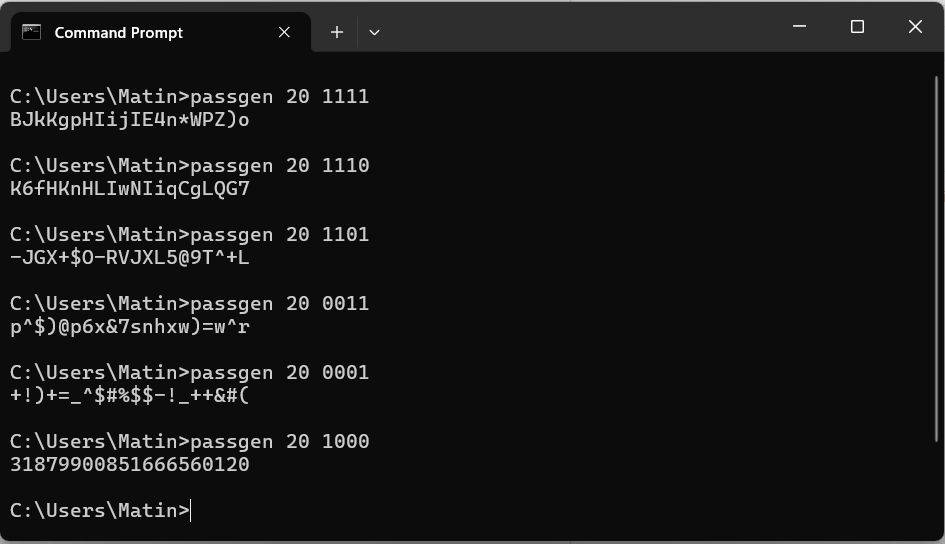 - passgen 8 1111 => output: **`=B@9cMLl`**