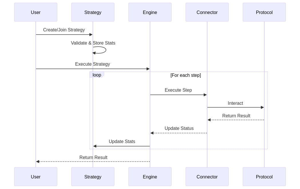 - **Engine Contract**: Handles atomic execution of strategy steps