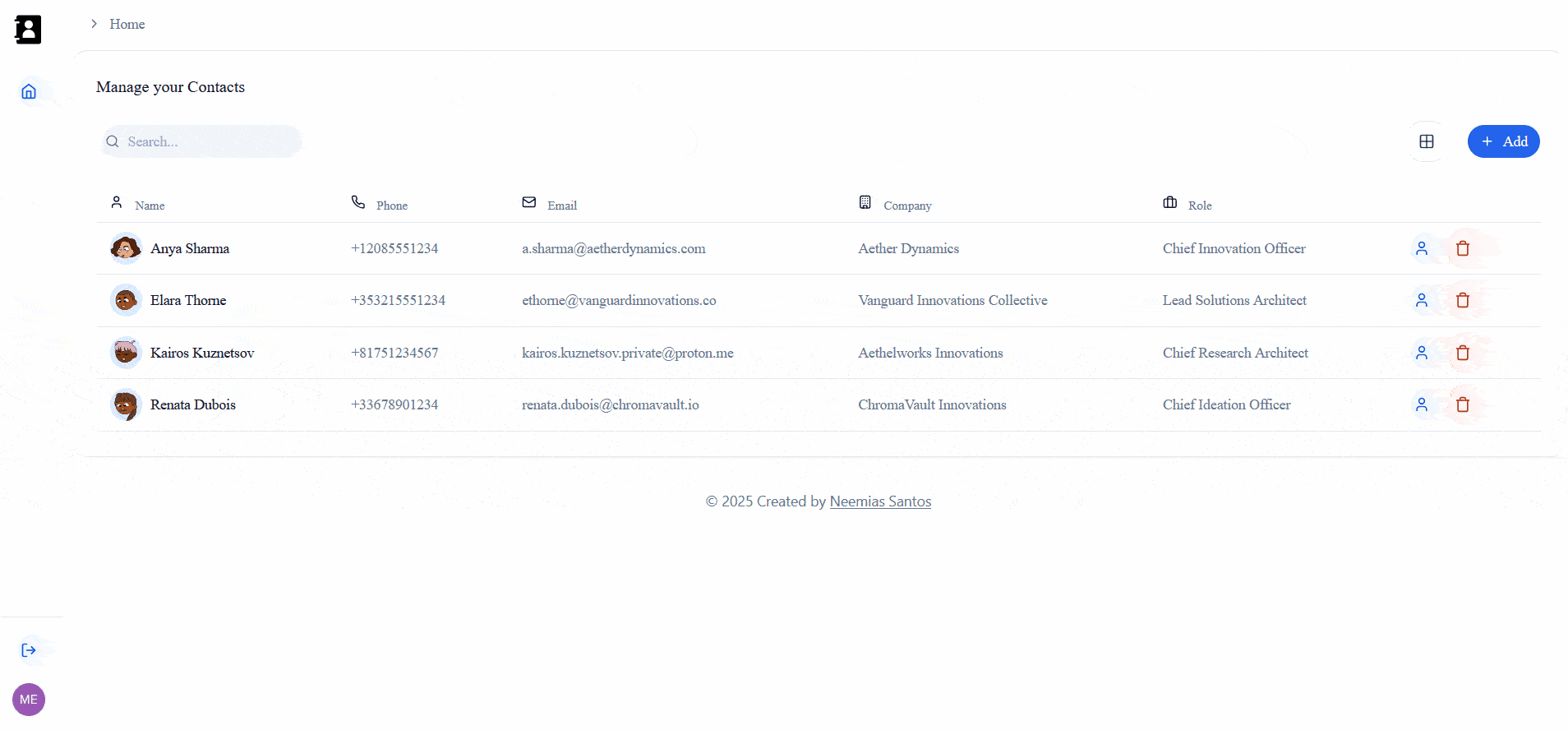 Uma interface Web para interagir com a API do projeto [Contact Manager API](https://github.com/neemiassgc/contacts-manager-api) que tem como finalidade gerenciar contatos