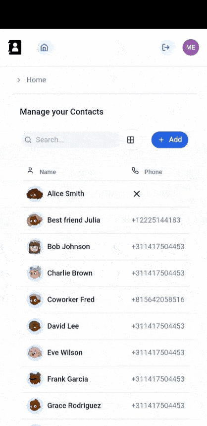 A web app interface built with Typescript + NextJs + TailwindCss and integrated with Auth0. Its purpose is to use an api to manage contacts performing CRUD operations