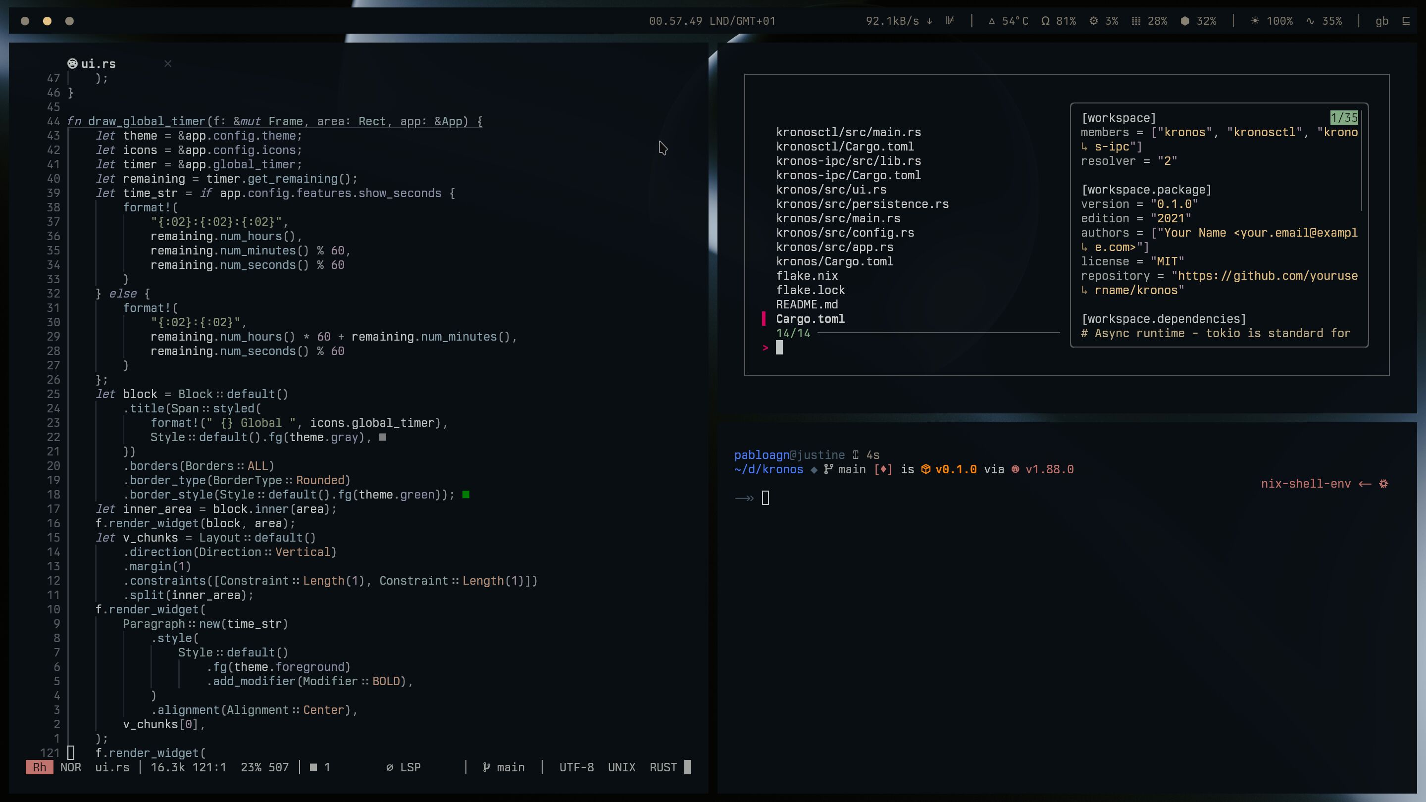 This hypermodular configuration combines the declarative power of Nix with 150+ curated packages using a profile-based configuration.