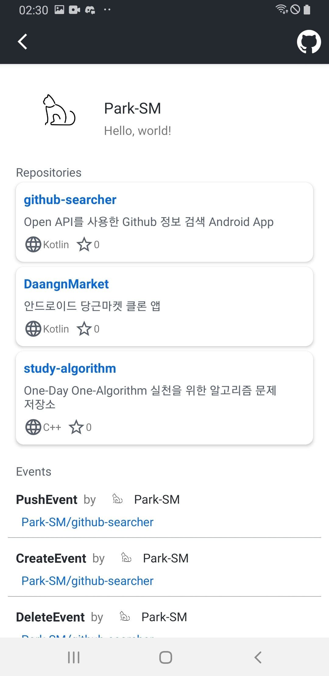 Github OpenAPI를 사용한 Github 정보 검색 Android App 입니다.## 1. Git-flow