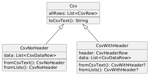 val csv2 = CsvWithHeader.fromCsvText(csvText) as CsvWithHeader
