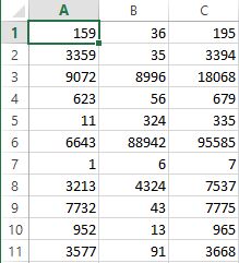 3. Calculates the sum by using Excel formulas in the original file.**Note**: Use the Sample Columns.xlsx file below as the input file for this exercise.