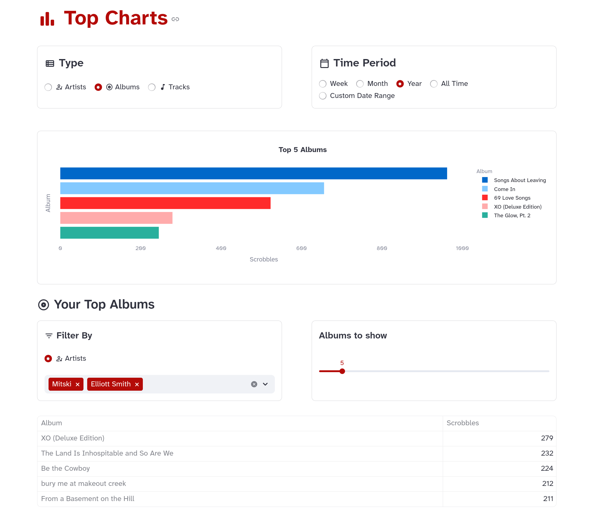 - Supports JSON/CSV exports from [lastfmstats](https://www.lastfmstats.com).