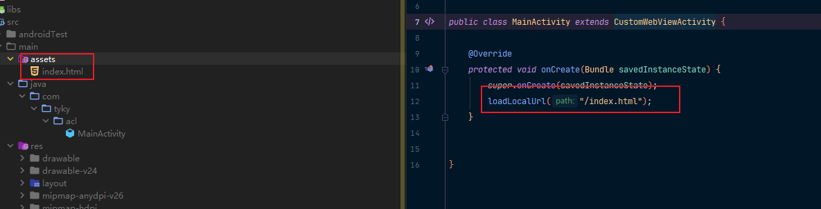 - `loadWebUrl` 加载url> **PS:loadLocalUrl主要是自动拼接了assets里的本地资源html文件,如下图**
