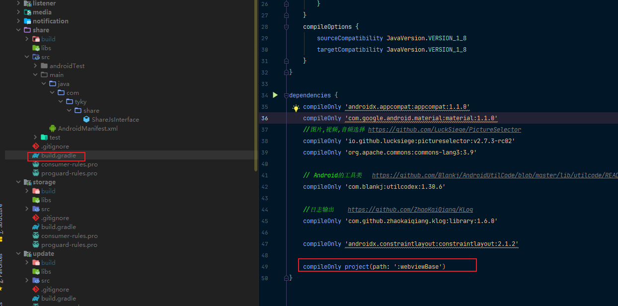 单独库,项目配置文件,自定义gradle脚本,组件化module开发