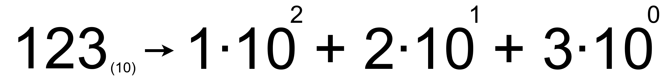 Zeby zrozumieć o co chodzi chcę przywołać analogię do systemu dziesiętnego. W systemie dziesiętnym liczby zapisywane są za pomocą ciągu cyfr, gdzie docelowa wartość liczby stworzonej przez ten ciąg jest liczona na bazie dziesiętnej: