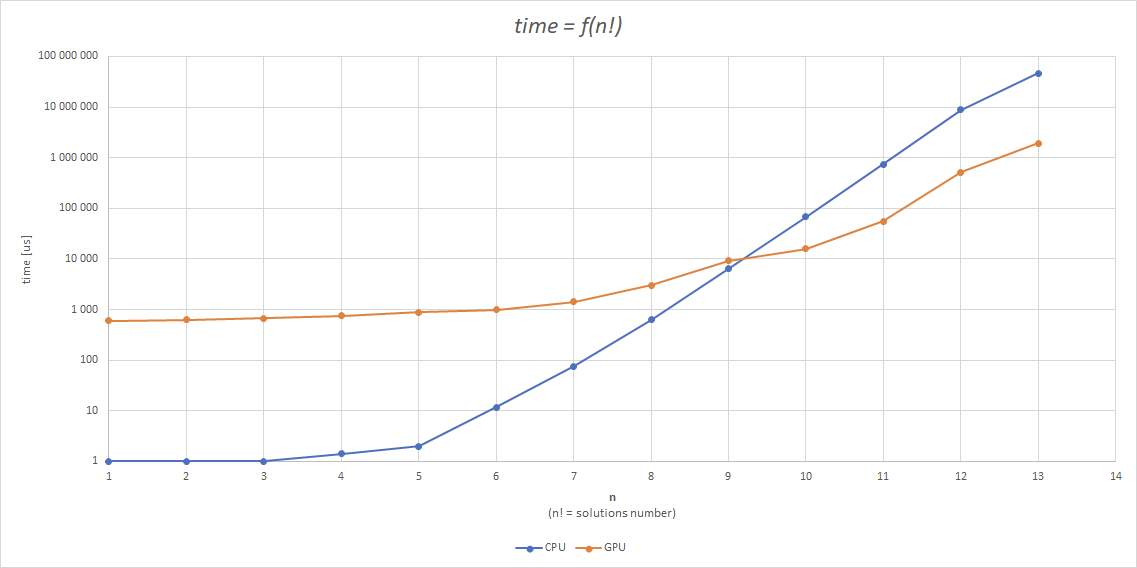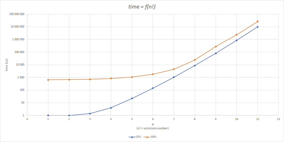 Staram się też jednak samemu napisać od podstaw taki algorytm, który zadziała na CUDA. W tym jednak pojawia się problem, bo mając klasyczne algorytmy wyznaczające wszystkie permutacje trochę ciężko wyznaczyć drogę, która pozwoli na zrównoleglenie obliczeń - a w zasadzie ja tego nie potafię zrobić. Rekurencja jest trudna w zrównolegleniu więc też odpada. Z tego powodu odrzuciłem kilka algorytmów: