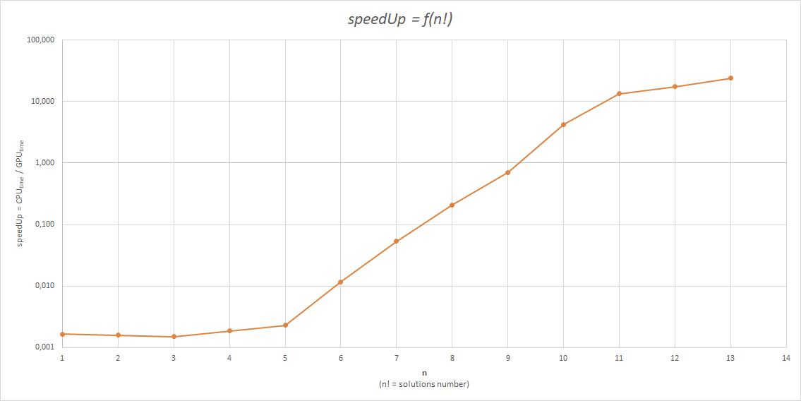 Problemem w tym podejściu jest fakt, że nie mamy nieskończoność wątków, tylko 1024 * 1024 * 64 = 67 108 864. Oznacza to, że jednorazowo będziemy mogli obliczyć nawet 11! permutacji, ponieważ 11! = 39 916 800. Chcąc obliczyć pozostałe permutacje, będziemy musieli wszystkie wątki ponownie zaprzęc do roboty, tak, żeby obliczyły pozostałe permutacje gdy ich łączna ilość przekracza ~67 milionów.