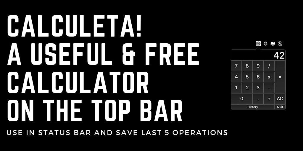 - awesome-swift-macos-apps - Calculeta - commit/varol/Calculeta?style=flat&label=" /> - Calculator for macOS which working on statusbar. (Utilities / Text)