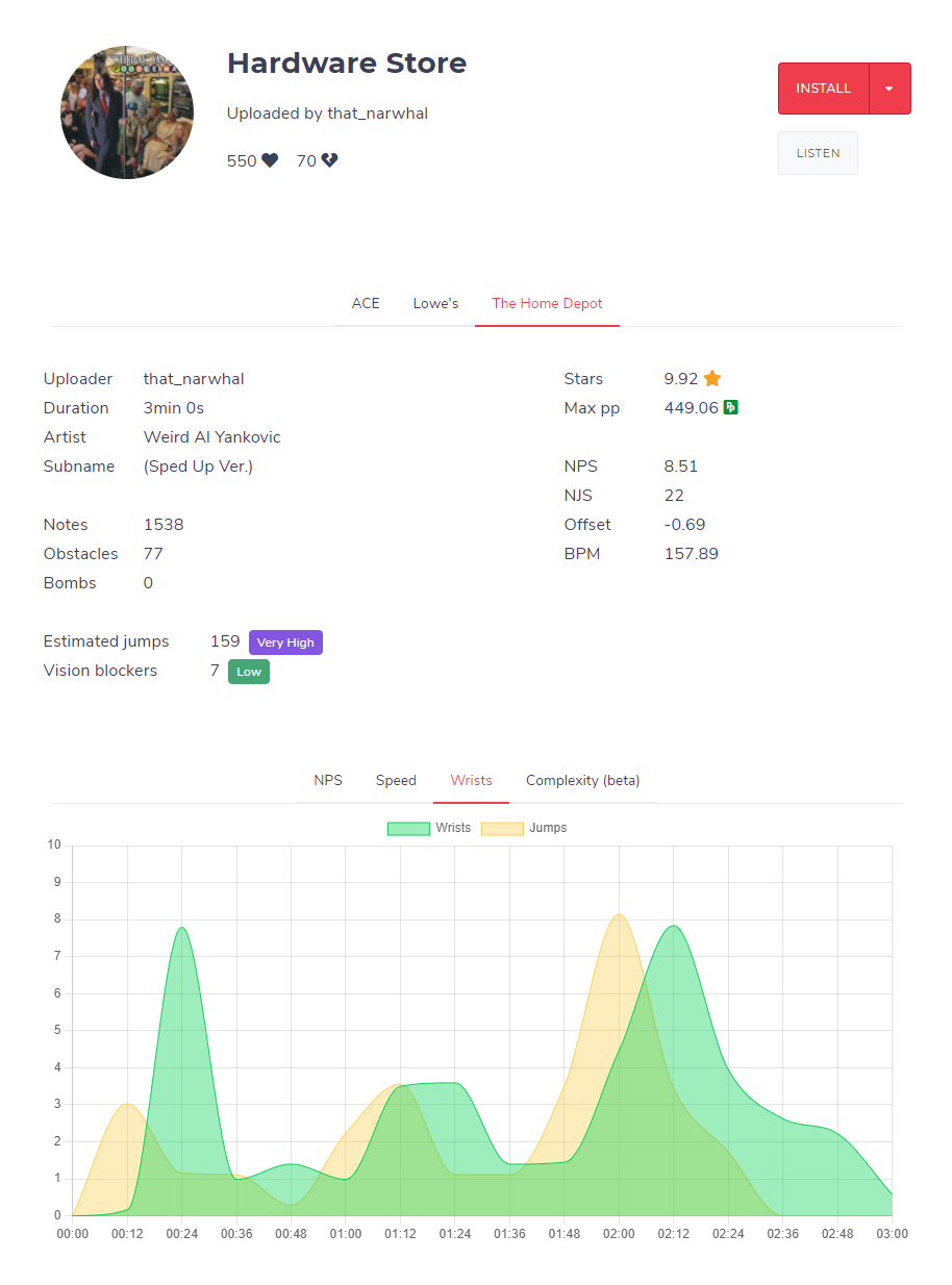 Analyze custom beat saber maps without installing or playing them and see if they fit your playstyle and level.