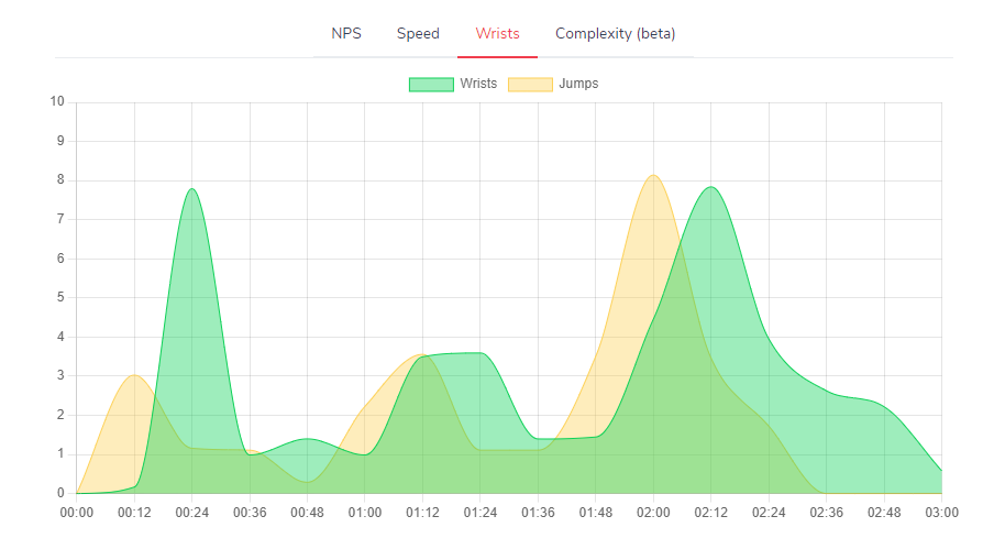 * You can also look how the nps, speed, wrist-heavyness and complexity develops over time