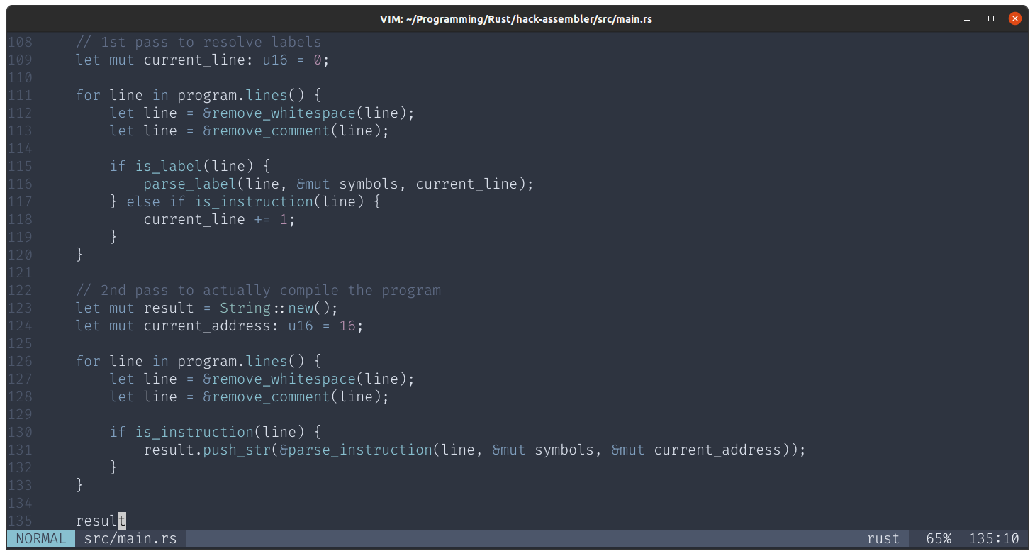 An implementation of the Hack Assembler from the 'Nand to Tetris' course, written in Rust!
