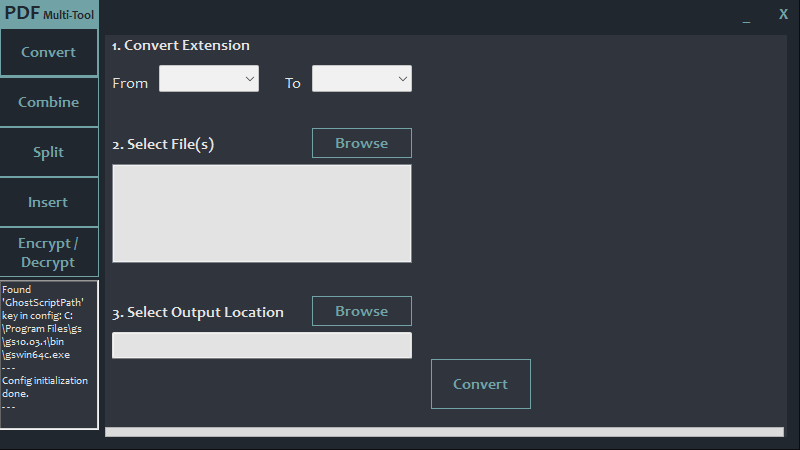 PDF Multi-Tool is a .NET Framework Windows Forms application written in C# that provides functionalities for PDF conversions using the GhostScript library, Supporting conversions between various file formats and offering a user-friendly interface for managing and configuring conversion tasks.