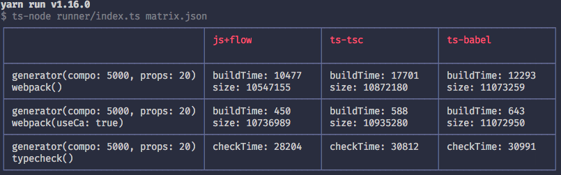 - **transpileOnly** _(default: `true`)_ - If `false` the benchmarks will measure both typechecking and transpilation using Webpack. Under the hood it will configure the appropriate loaders to parallelize both operations.